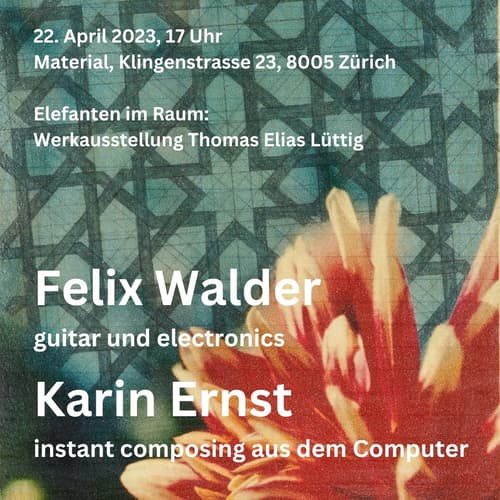 Samstag, 22. April 17h instant composing aus dem Computer Karin Ernst. guitar und electronics Felix Walder