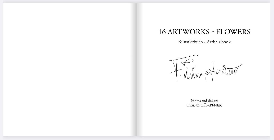 In the 16 Artworks series, artists' books are published in which 16 selected works of art are presented on a specific theme.The idea behind this project is to set art against the flood of images of our time. Quality against quantity. For each volume, selected works will be published as an Open Edition in a signed repro print as Silver Gelatin C-Prints and Giclée Fineart Prints. See the link "buy at PEECHO" for buying this book at RETAILORS on the right side. In 2021, the author's son found an inconspicuous box in the attic. In it a handmade booklet with the inscription "Herbarium for Valentin Hümpfner - created on April 20, 1880". For 140 years, pressed flowers and plants now lay in this notebook, gradually changing their colors and strengthening their structures through the drying process. Time created works of art of unique beauty. The passing of these living creatures was thus prolonged. Once again they rebel in all their beauty against the transience of all being. Franz Hümpfner photographed all these plants, processed the digital data in Photoshop, enhanced colors and contrasts, created enlargements in image sections. In this way, photographic works of art were created about the fleeting nature of all material existence.