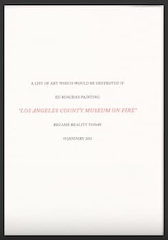 A list of art which would be destroyed if Ed Ruscha's painting "Los Angeles County Museum on Fire" became reality today