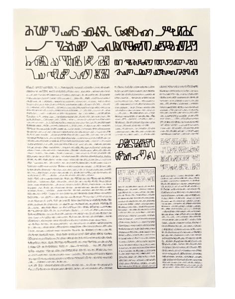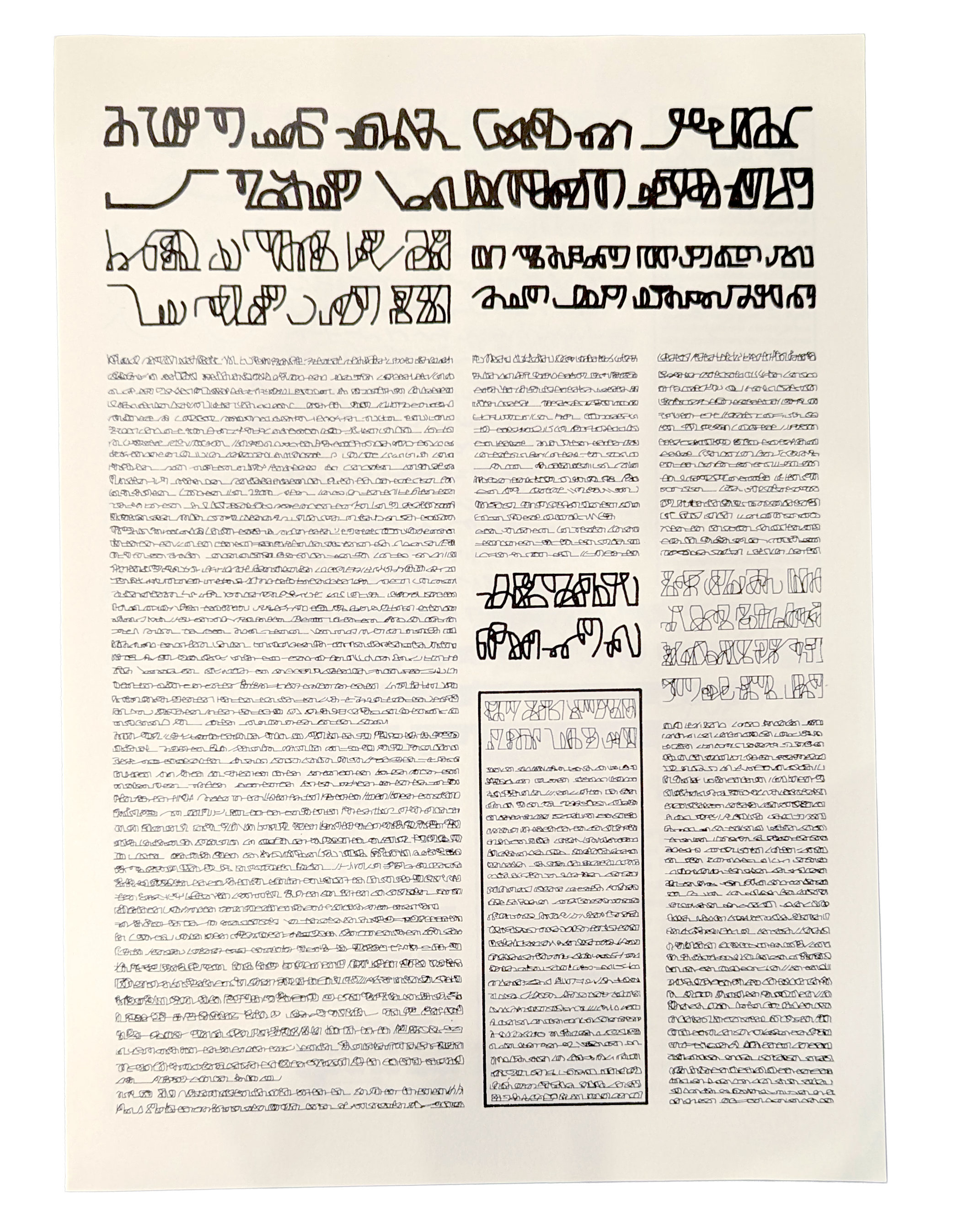 This exhibition copy of Mirtha Dermisache's 'Article' for Revue Axe N° 1, April 1975, Guy Schraenen éditeur, was printed in conjunction with Mirtha Dermisache: To Be Read (2024), a collaborative project between the Cluster of Excellence "Temporal Communities' of the Freie Universität Berlin, A-Z Space for Experimental Graphic Design, oxfordberlin and the Legado Mirtha Dermisache. Legado Mirtha Dermisache / Estate Guy Schraenen éditeur /Archive at Centro Espigas Buenos Aires / Courtesy Herlitzka & Co.