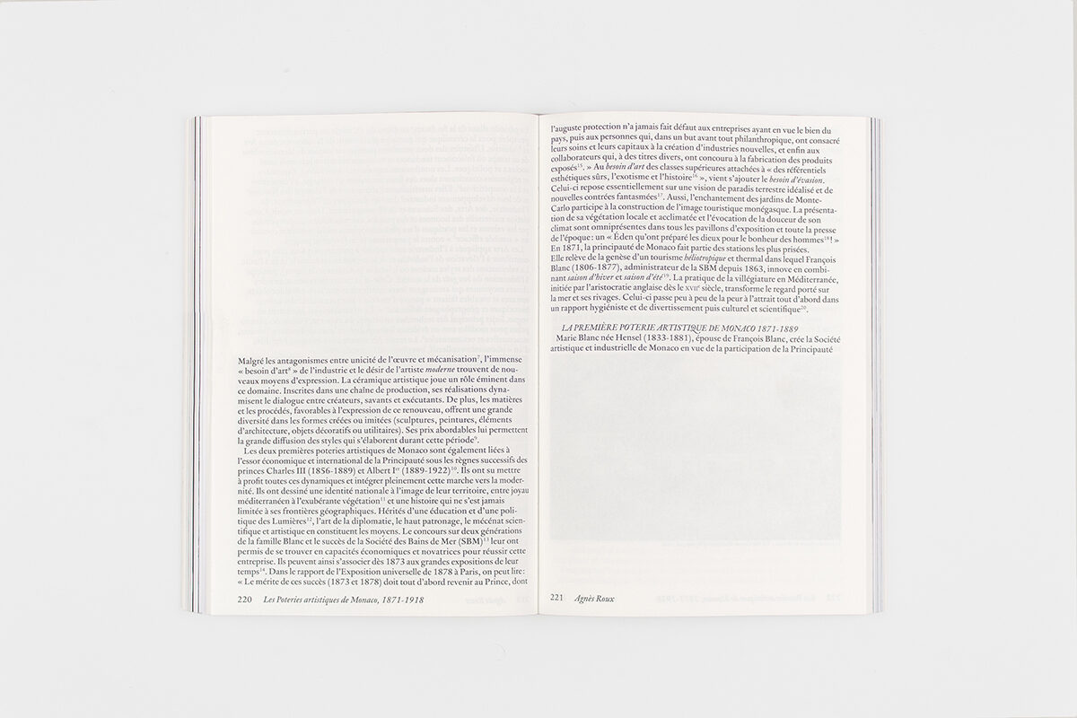 This publication accompanies the exhibition Artifices instables, Histoires de céramiques, presented at Nouveau Musée National de Monaco – Villa Sauber and curated by Cristiano Raimondi. Featuring more than two hundred pieces, the project escapes the well-trodden art historical narratives that keep ceramics at the margins of the arts, and instead pays tribute to the medium and investigates it as a heterogeneous material capable of narrating multiple histories. Taking as its starting point the creation of the first Ceramic Art Workshop of Monaco in the second half of the nineteenth century, the book portrays some of the leading figures in the Principality’s ceramic history—the Fischers, Albert Diato, and Eugène Baudin—and creates bridges and resonances with numerous artists, among them Johan Creten, Simone Fattal, George Ohr, Ron Nagle, Pablo Picasso, and Magdalena Suarez Frimkess, some of whom may be distant in space and time, but nevertheless share deep connections and unexpected complicities. The book gathers more than a century of visions that this malleable medium has inspired, and mirrors ceramic artists in its aspiration to provoke a shift in perspective.