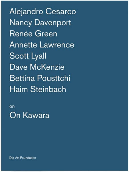 Artists on On Kawara is the sixth volume in a series that builds upon Dia Art Foundation’s Artists on Artists lectures. The contributors to this book explore the practice of On Kawara from various points of entry: Alejandro Cesarco uses a self-reflexive approach to the ideas of artistic legacy, influence, and work; Nancy Davenport contends with innocence and trauma in two of Kawara’s most influential series; Renée Green weaves a poetic relationship between the work of Chantal Akerman and Kawara; Annette Lawrence provides a close reading of the Today series and her own journals, grappling with what it means to keep time; Scott Lyall considers the experience and contingency of time, differentiating between thinking with and speaking about a work of art; Dave McKenzie stages a diaristic correspondence with Kawara; Bettina Pousttchi reflects on duration in art and the history of time keeping; and Haim Steinbach plays with Beckettian abstraction, absurdity, and repetition.