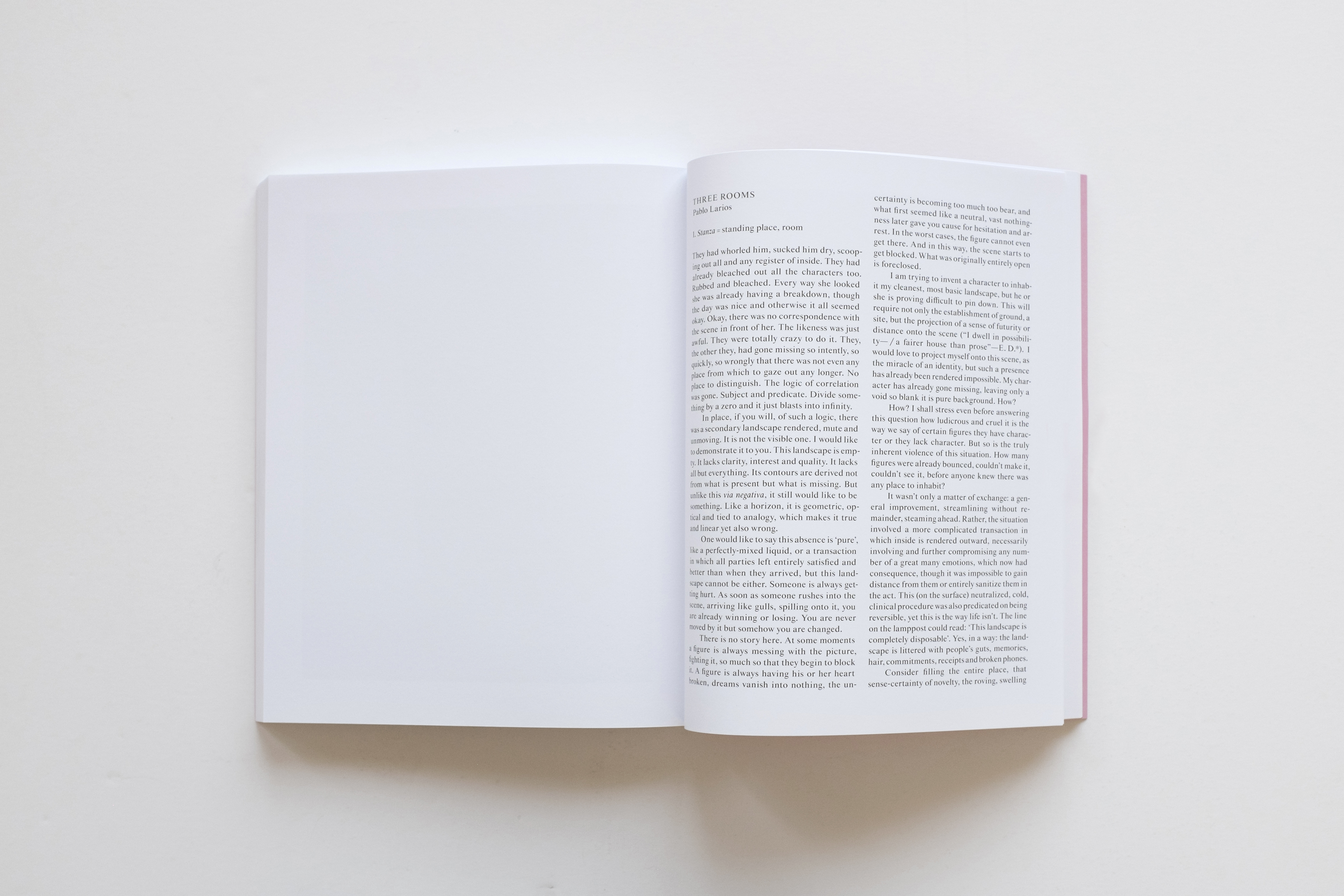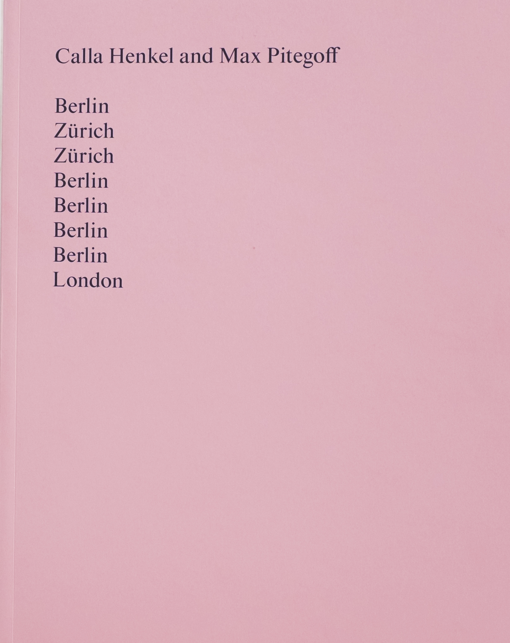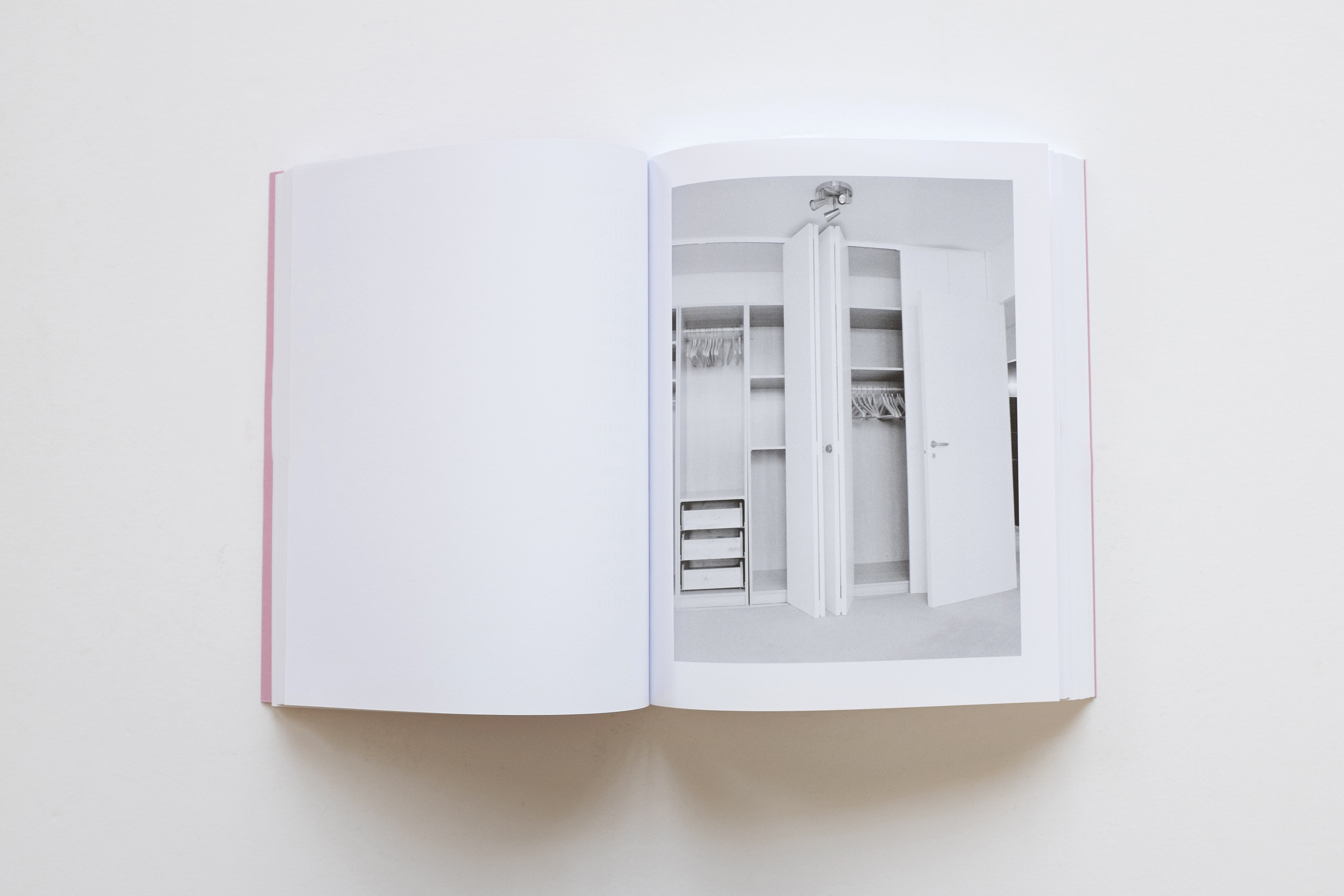 Calla Henkel and Max Pitegoff’s book collects black and white photographs taken at apartment viewings in Berlin, London and Zürich in 2015, and exhibited at Galerie Isabella Bortolozzi in Berlin the same year. The images render a landscape of apartments, mostly empty, punctuated by potential buyers or renters projecting their own possible futures onto the spaces. The photographs blend into each other as if one building, aggregating material treatments,fixtures, flooring, and faucets in their extraordinary specificity; or as if one city, seen from the inside as a picture of a private public sphere. The book includes a new text by writer Pablo Larios elaborating on the staging of personal environments and the relationship between gure and ground in Henkel and Pitegoff’s work.