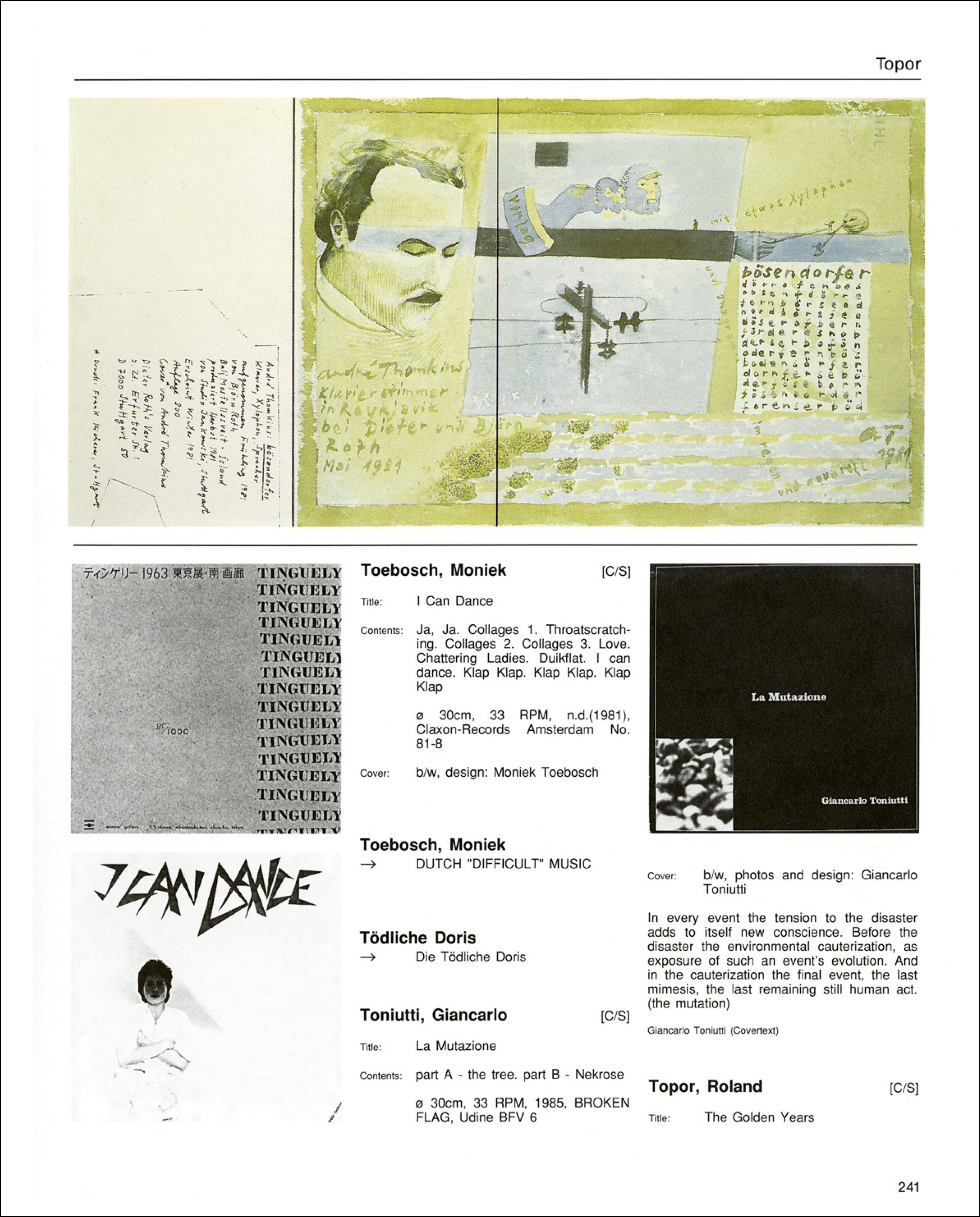 Broken Music focuses on recordings, record-objects, artwork for records, and record installations made by thousands of artists between WWII and 1989. It also includes essays by both editors as well as Theodor W. Adorno, René Block, Jean Dubuffet, Milan Knizak, Laszlo Moholy-Nagy, Christiane Seiffert, and Hans Rudolf Zeller, as well as a flexi disc of the Arditti Quartet performing Knizak’s “Broken Music.” The centerpiece of the publication is a nearly 200-page bibliography of artists’ records.