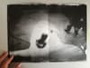 In his latest publications, Vutuc uses the possibilities of book-making in a more object-wise style. The way the books (they don’t really fit to the genre of zines anymore) are bound and printed is playing a more important role. Building opens up with a risograph-printed cover, which makes your fingers dirty the minute you hold it in your hands for the very first time. Uncovering it is not easy, as the cover is locked up with a masking tape which will surely disturb the surface of the cover once you try to unveil it. Looking at the book is an experience in itself; each person approaches the book-object in their own unique way to finally reveal the spreads that Vutuc has composed. You will still find the blurry, strongly treated black and white compositions with words scratched on them that are – if at all readable – not necessarily understandable, because they are written in several different languages. At this point, Vutuc couldn’t be more far away from photography as a medium of documentation, and even the words describe almost nothing but appear more like signs and symbols. “Building” as a title for the book holds of course its simple meaning of any kind of a house, but also refers to the act of building – and one should leave it in that richness of associations as it is – whether it’s physical, natural, or in any figurative sense.