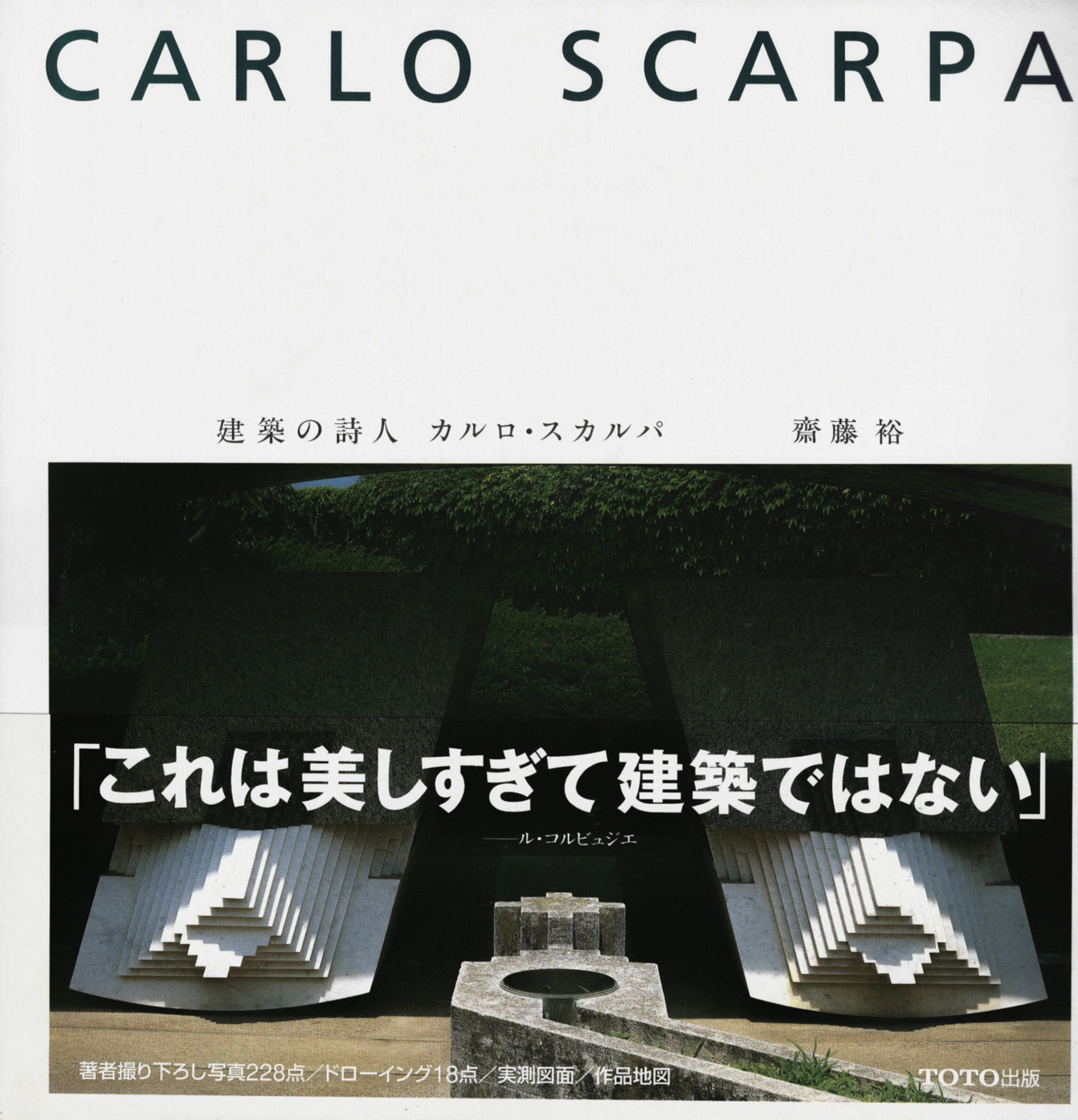 A massive book mainly covering the Brion Family Cemetery located near Venice. One of Scarpa’s largest projects, this also happens to be the place where he was buried. The overview includes ten other Scarpa creations in Italy such as the Canova Museum and various Biennale pavilions. Hundreds of colour photos of interiors and exteriors, surface details, and surroundings. Colour drawings and photos all printed on thick grainy paper, sturdily bound in a linen hardback, and wrapped in a paper jacket. Similar in concept to Toto’s earlier books on Barragan, Candela, and Shinohara.