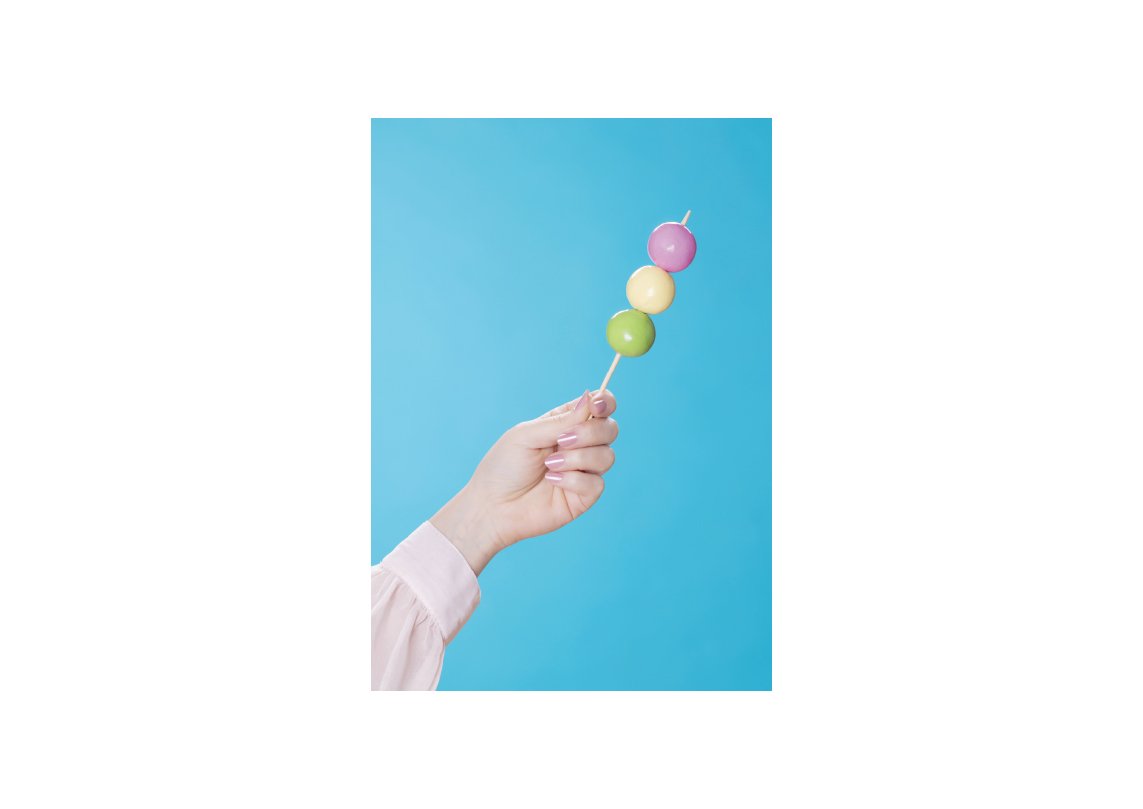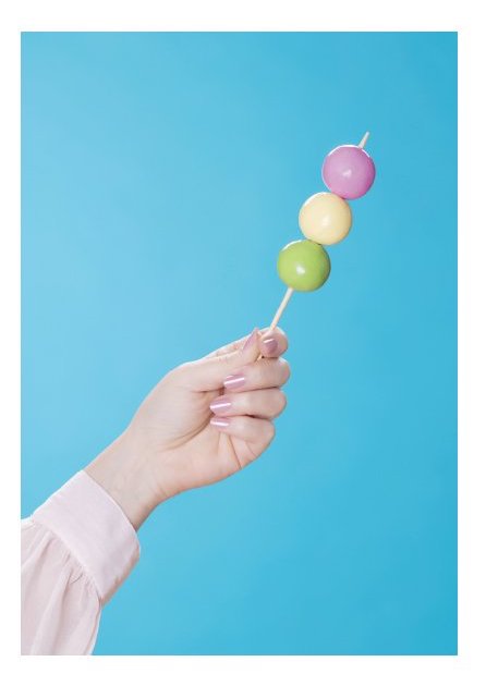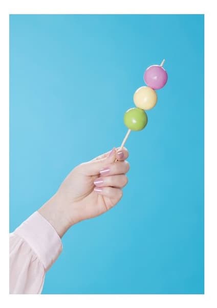 Three colored balls, connected together by a stick, become the best known Japanese dessert: DANGO.
