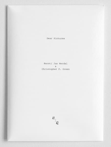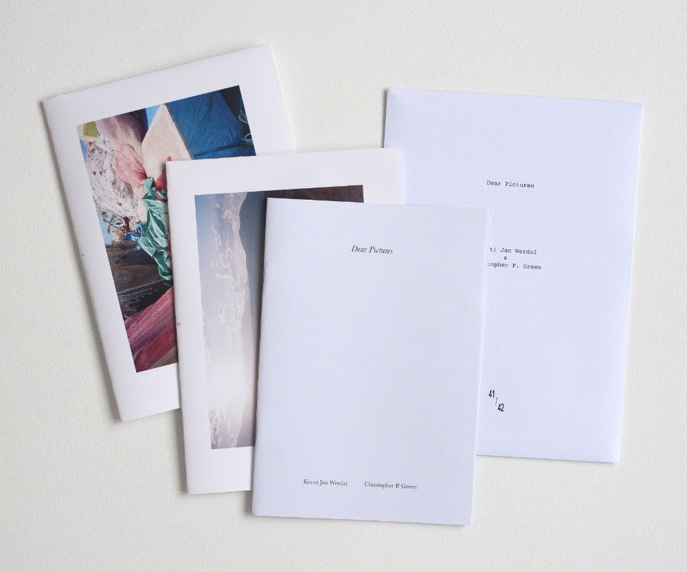 Over the course of 2016-2017 Kersti Jan Werdal sent photographs, one at a time and without description, via email to Christopher P. Green. In private, Green began to write responses to these pictures. This book and its accompanying sheets presents this transatlantic collaboration.