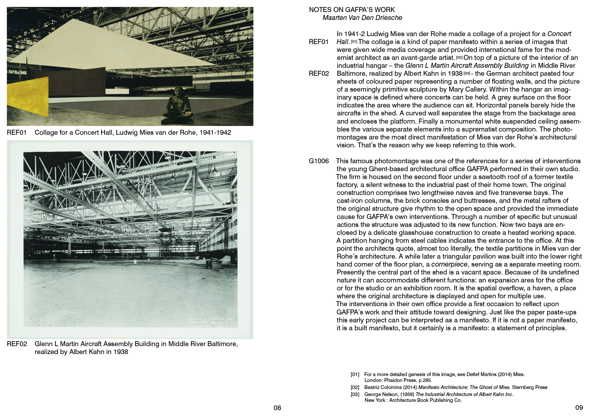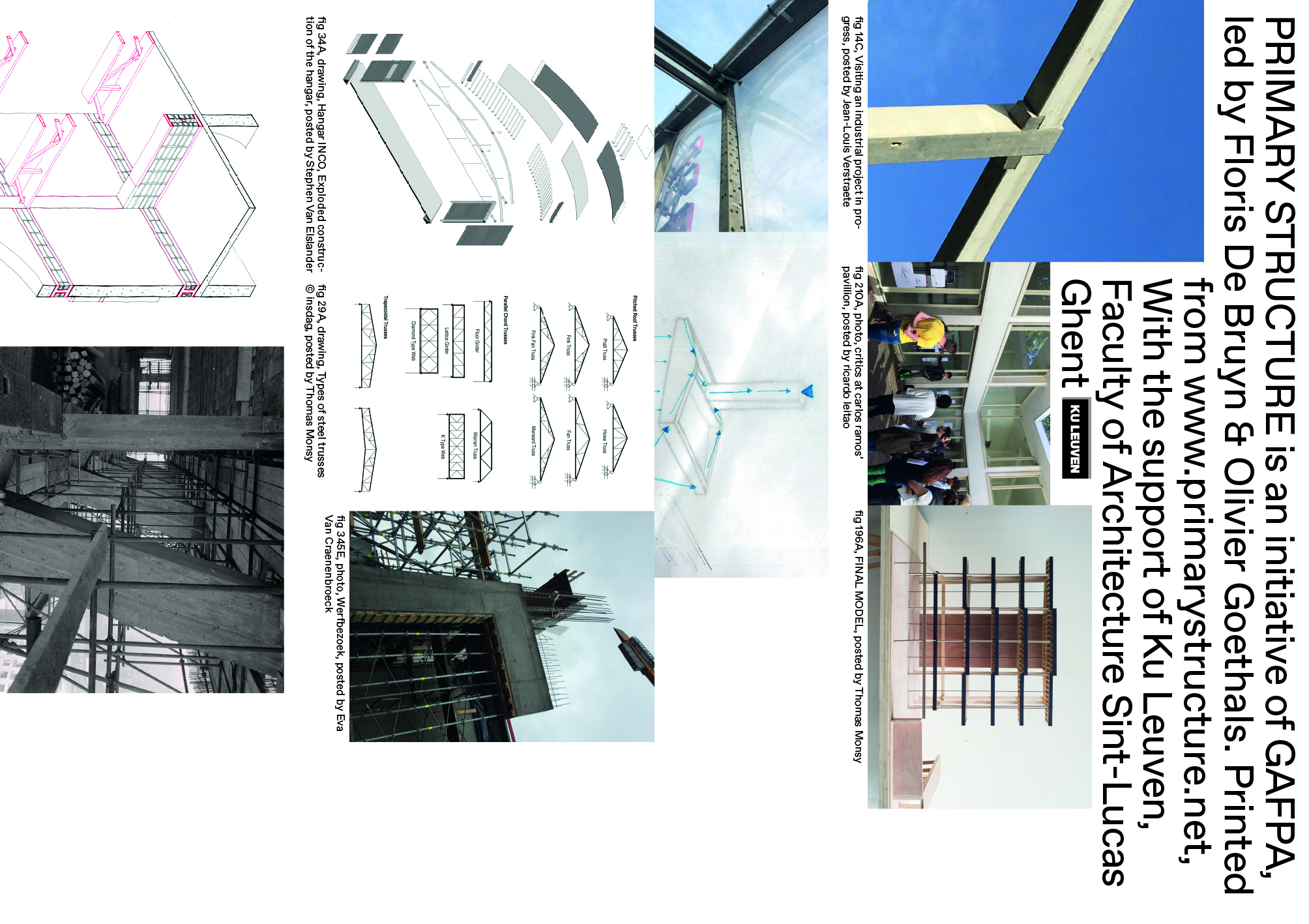 The first contribution is a text written by architecture critic Maarten Van Den Driessche about the work of GAFPA of the last ten years. The second contribution contains pictures of our studio made by Aglaia Konrad including fragments of the making process. The third contribution is from Bert Huyghe. As a painter he contributed a text, illustrated by some of his paintings. The fourth contribution is a selection of research done over the past three years by students in the PRIMARY STRUCTURE studio which we teach with Olivier Goethals at the KU Leuven Faculty of architecture Ghent. Printed from the blog primarystructure.net.