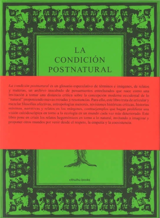 La condición postnatural is a speculative glossary of terms and images, of stories and subjects, an unfinished archive of intertwined thoughts that are born as an invitation to take a critical distance from the modern Western conception of the “natural” by proposing new gazes and resonances. To this end, this book tries to articulate and mix affective philosophies, minor anthropologies, critical historical reviews, minimal histories, narratives, and stories on the margins, counterexamples that proliferate a kaleidoscopic vision of ecology in an increasingly deteriorated world.