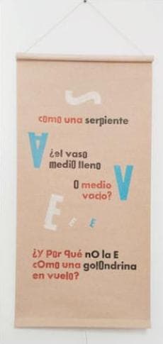 “La S como una serpiente” es un juego, casi infantil, con la tipografía y con su forma; relacionando cada letra con un objeto, éstas dejan de funcionar como tal para convertirse en cristal, aves y reptiles.