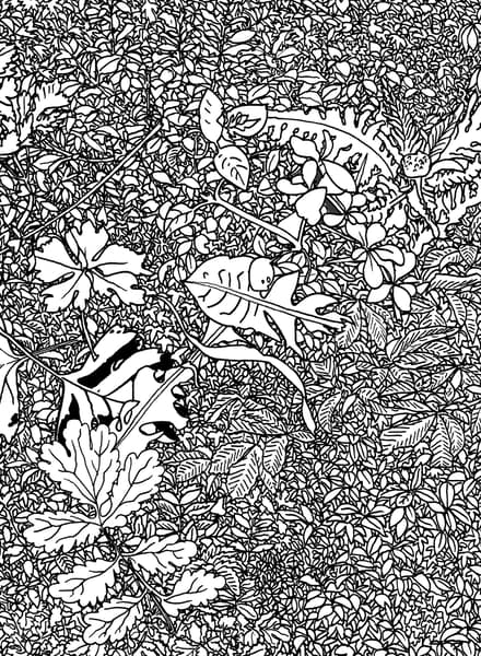 Density in the foliage, branching of the tree, structure in the bark: this book is entirely dedicated to organic, wild-growing greenery, mostly in black and white, but patterns emerge, the leaves become a frenzy, and grimaces from the thicket smile at us. The volume is deliberately overwhelming, making it impossible to get an overview. Rather this thick paperback serves as a reference for untamable, rampant, sprawling kraut.