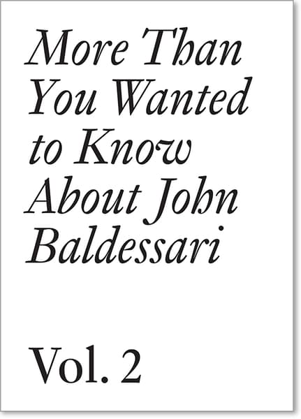 The texts in this two-volume set trace the development of John Baldessari’s understanding of art from the early 1960s through to the present. His writings in this volume (1975–2011) address a broad range of topics, from the system he uses to classify material in the studio, his tributes to other artists, through money in the art world. Principle among Baldessari’s themes is his long-standing investigation into the similarity and possible interchangeability of word and image. In his view, words have the advantage of being the most abstract though paradoxically the most common and understood form of communication, thus making it possible to catch more of the world in the net—not just the picturesque. All the writings included here are motivated by that impulse and to ever expand the possibility of art.