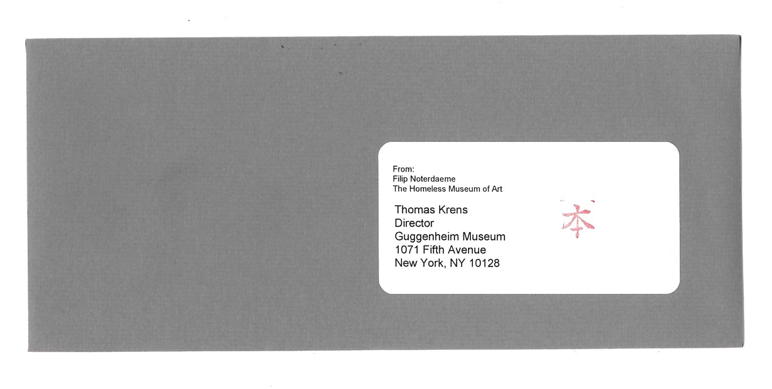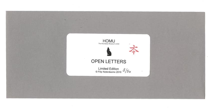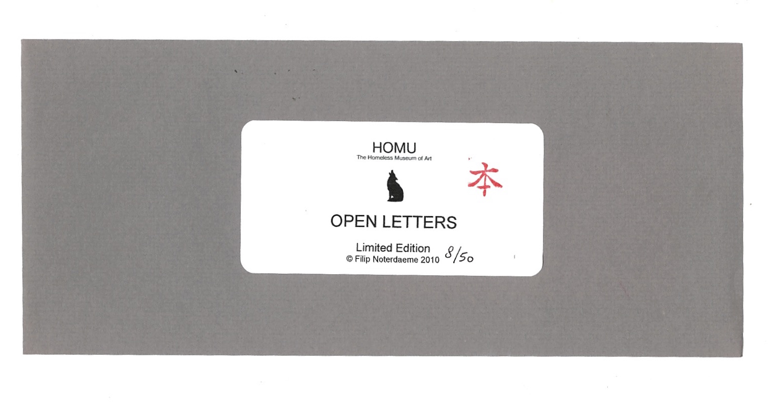 This publication is part of an art project by Noterdaeme «HOMU ; The Homeless Museum of Art». Between the years 2003 and 2009, he wrote 25 open letters to museum directors, curators, artists and other art world insiders. He never received a reply from any of them.