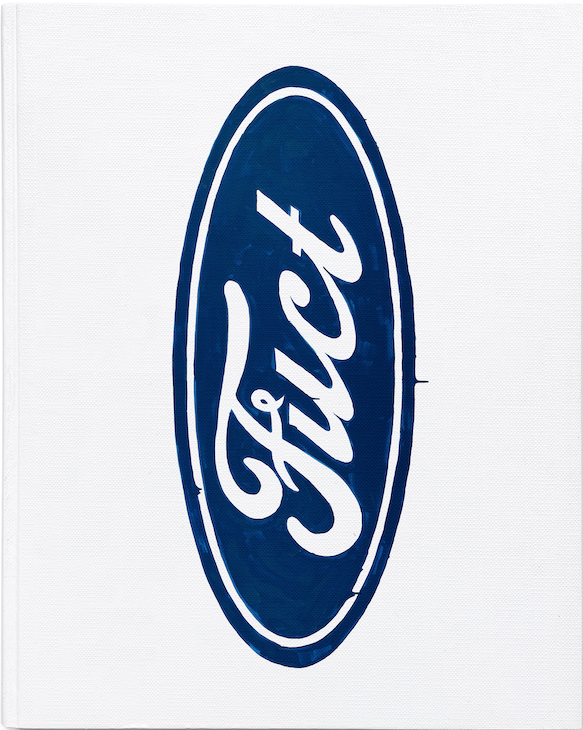 “Erik Brunetti: Oval Parody” is a new artist book published on the occasion of the exhibition of the same title at Spazio Maiocchi, Milan. Inspired by FUCT’s now defunct parody of the Ford logo―the iconic graphics that cemented Brunetti’s authority as the original subverter of what is now called streetwear, and played a key early role in establishing reappropriation as a fundamental gesture within its lexicon―“Oval Parody” centers on a new series of twelve acrylic paintings furthering Brunetti’s thought-provoking feedback loop of reference, interpretation, and creation.