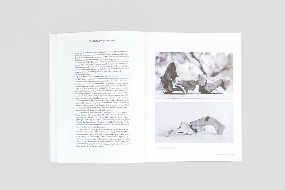 The art of Paolo Icaro makes an utterly original contribution to the languages that developed in the 1960s and 1970s, such as Arte Povera, Conceptual Art and Process Art, with particular impact on the renewal of contemporary sculpture. This monograph edited by Lara Conte is based on a decade of research conducted on the works and materials of the Archivio Icaro. It retraces the entire creative path of the artist in a thematic itinerary aimed at shedding light on his poetics from the 1960s to the present. The book brings together a large body of previously unpublished materials, along with writings by the artist, a critical anthology and bio-bibliographic resources.