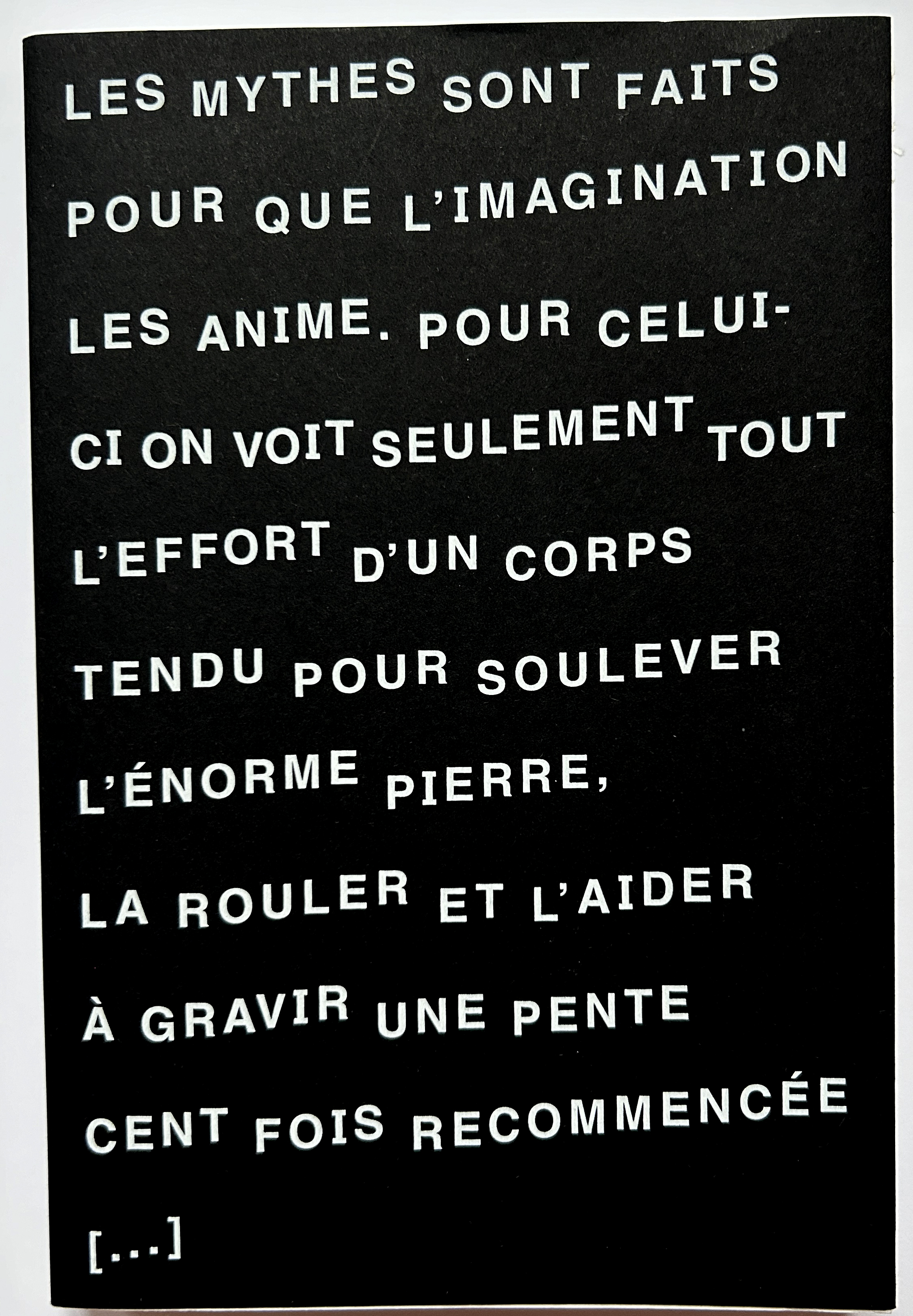 Part one is literally about beginning. The book binds together a collection of 101 found ‘Part one’ pages, reproducing the original page sizes, fonts and typographic placing. Printed in 2010 for an installation of 101 copies that were intended to stay together, followed by a market edition of 202 the next year and reissued in 303 copies with inverted white-on-black dust jackets in 2023, quoting Albert Camus about Sisyphus – an ongoing rehearsal, asking what it means to keep (or not give up) beginning.