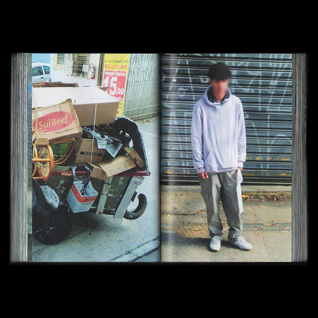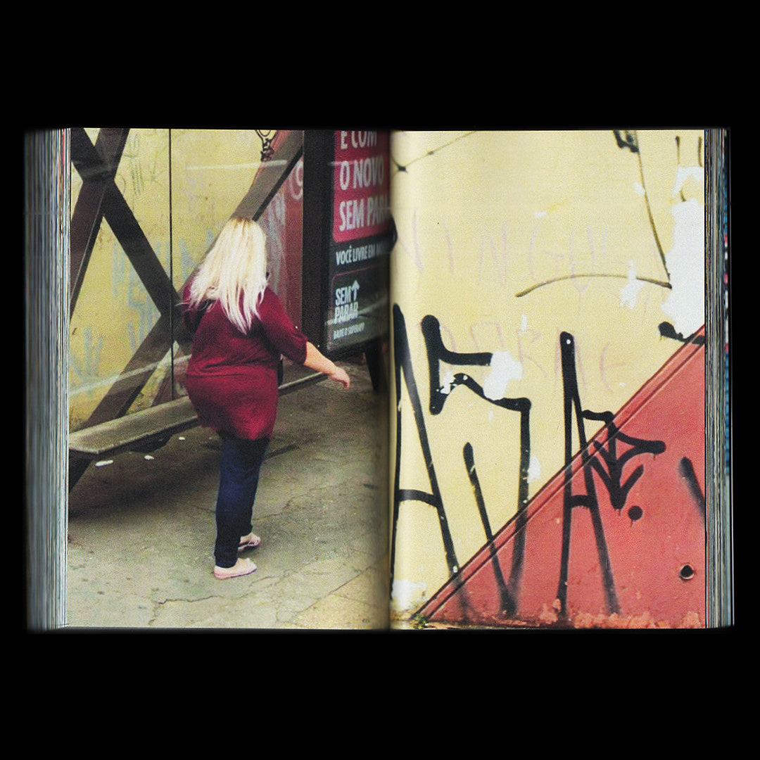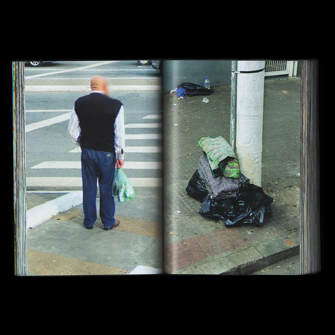 Passantes (passers-by, in English) investigates everyday life in a metropolis where anonymity and exposure intersect. The backdrop is São Paulo, Brazil's most populous city, with its busy corners, shadows cast on the asphalt, buildings that cut out the sky and the traces of a day that goes on without pause. The images, taken from Google Street View, capture hurried walks, waiting on the sidewalk, interrupted gestures, chance encounters and the loneliness of the daily commute. Each page contains an anonymous body in transit, marked by time and space, immersed in the involuntary choreography of the city. The images in Passantes are not the result of a direct choice, but of an automated system that continuously records the city. The human eye, displaced from capturing to curating, only intervenes in the selection and organization of the scenes. This process breaks with the tradition of photography as an intentional act and highlights the role of the machine in the construction of visual memory.