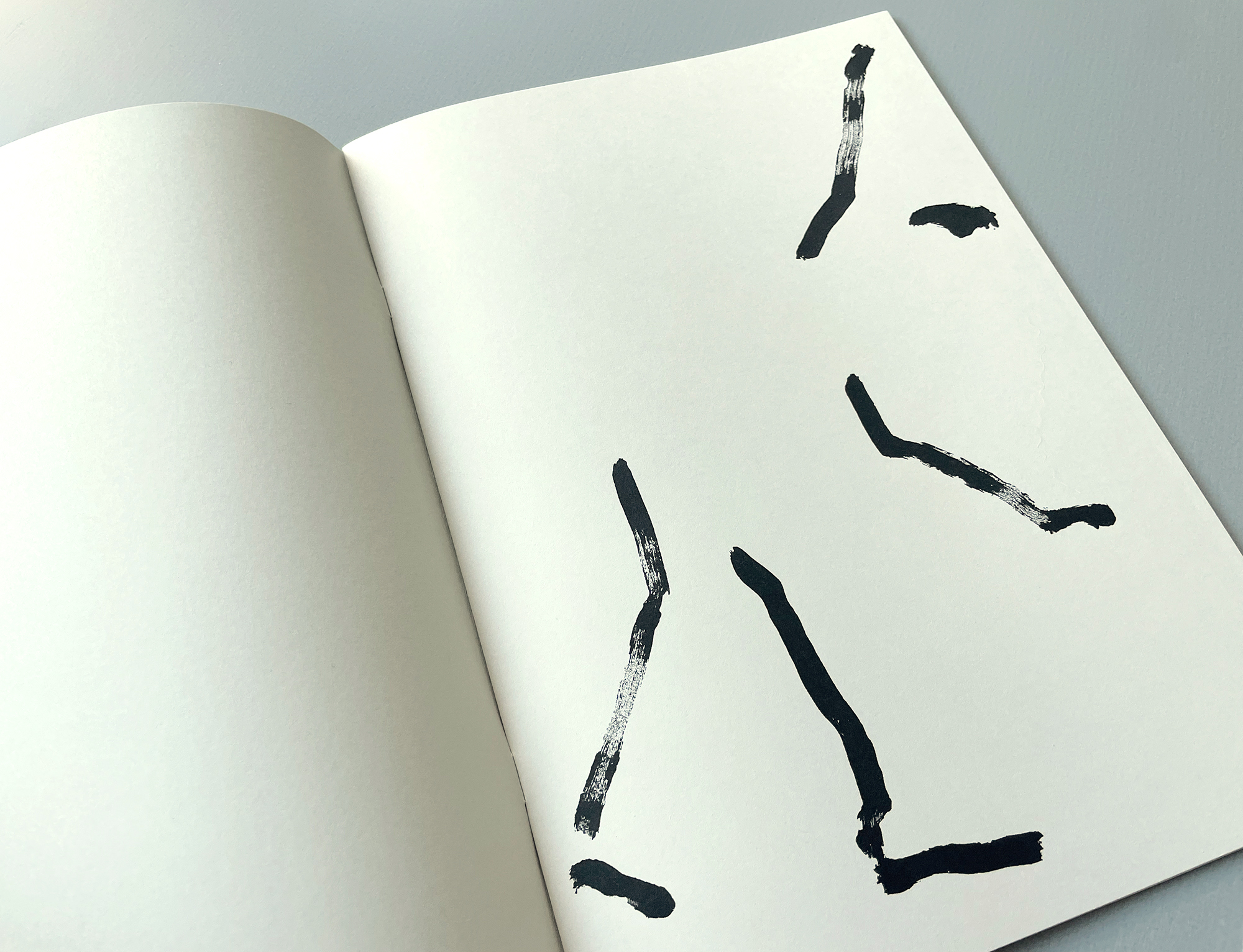 You can’t learn Pogo. Pogo is do-it-yourself. There’s no right or wrong—rules contradict ecstasy. Whoever dances Pogo isn’t just moving to punk music. They’re part of it, they belong to it. Improvisation full of gaps and exciting in-betweens. In “POGO”, a brush grabs a mannequin as a stencil. What’s left behind are dissolving figures, their limbs shooting like arrows in every direction. Every page, every sheet, every space is taken over by foreign characters that refuse to stay still: pure action lines—direct, rough, and thrown onto paper as fast as tags on walls. 1-2-3-4.