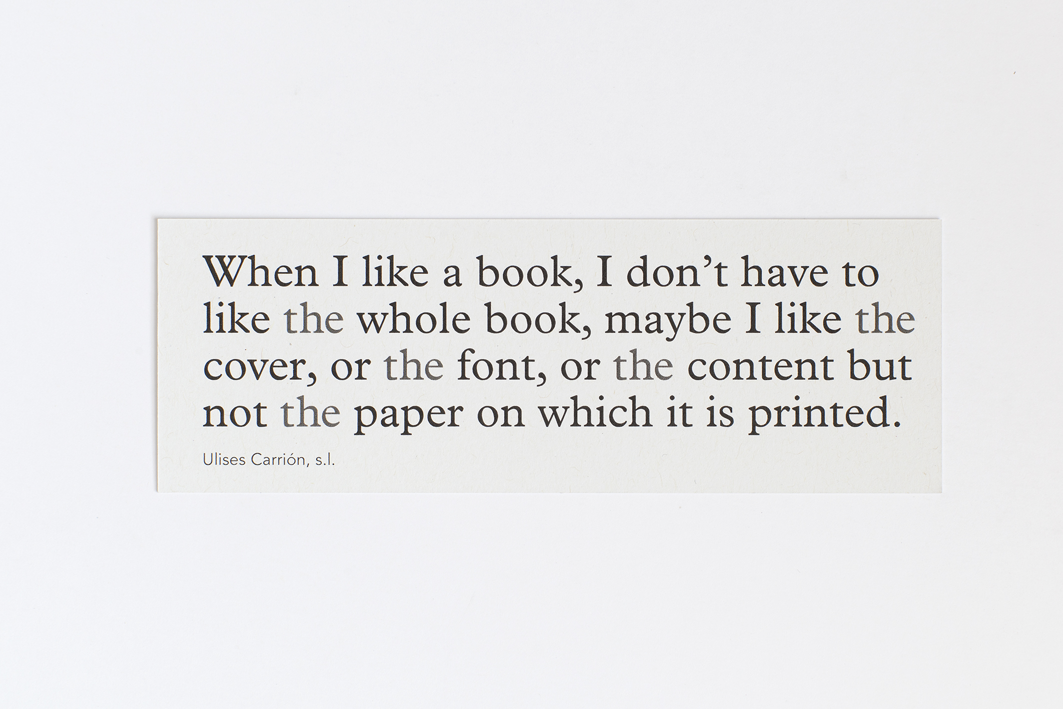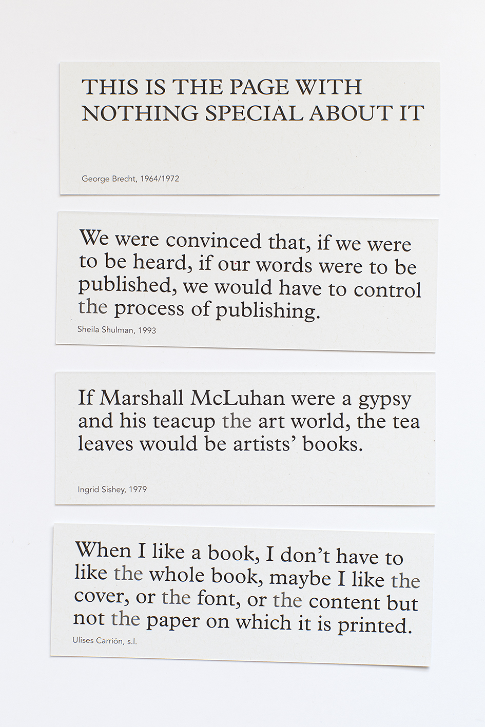 Set of 4 bookmarks with 4 different quotes about books and bookmaking.