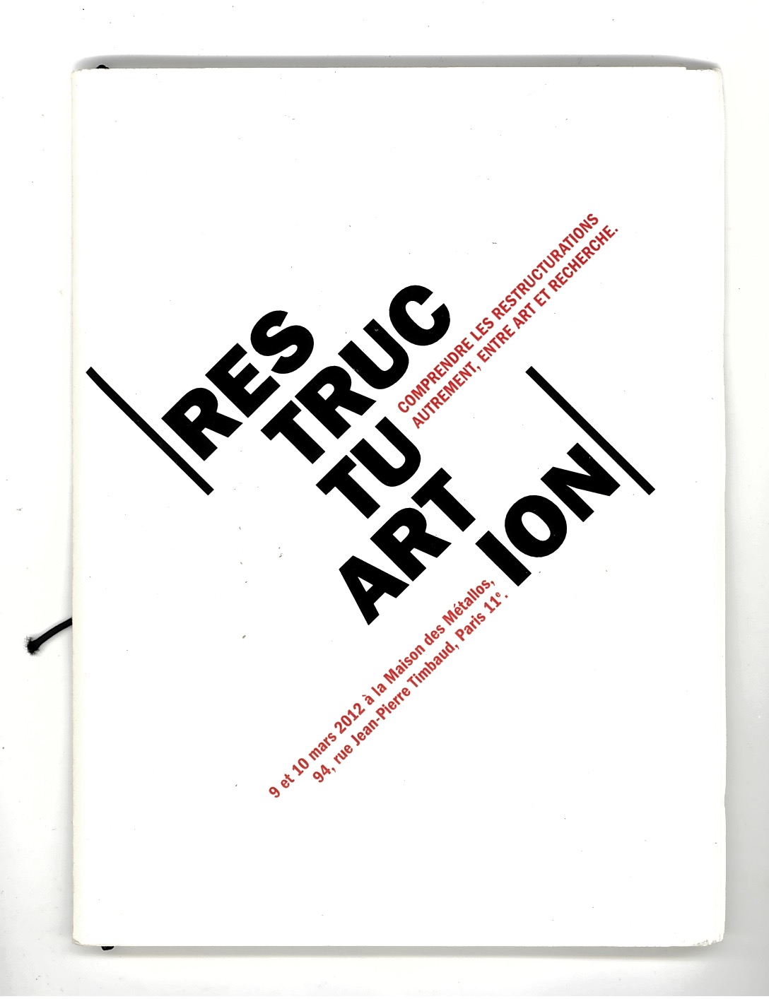 Publication for an exhibition-manifestation-seminar «Arts et Restructurations» held in Maison des Métallos in Paris, March 9, 10 in 2012.