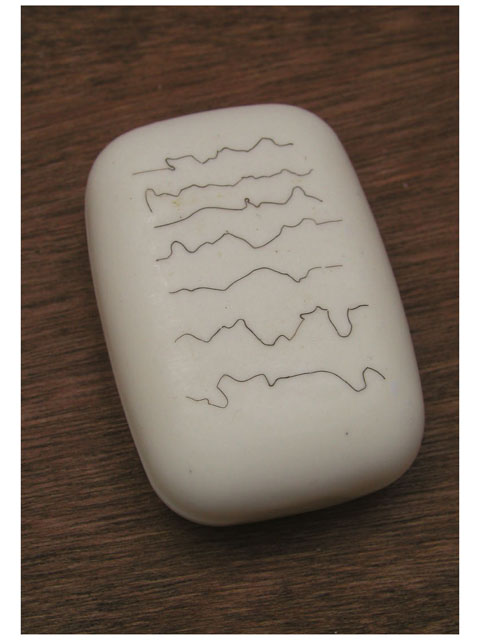 Small sculpture, made out of soap and human hair. Edition: 2 (number one of the edition was left behind in a public toilet in Oslo, number two is a work of art). It also exists as a take away postcard.