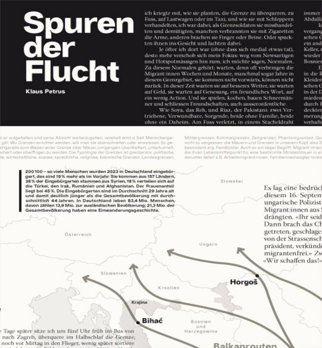 Since 2016, Klaus Petrus has been documenting escape routes across the Balkans to EU countries and Switzerland. During these journeys, he lived with migrants in barracks and ruins, accompanied families, crossed borders with refugees, and documented the violence of border police – and despite everything, experienced a great deal of humanity, everyday life, and normality.