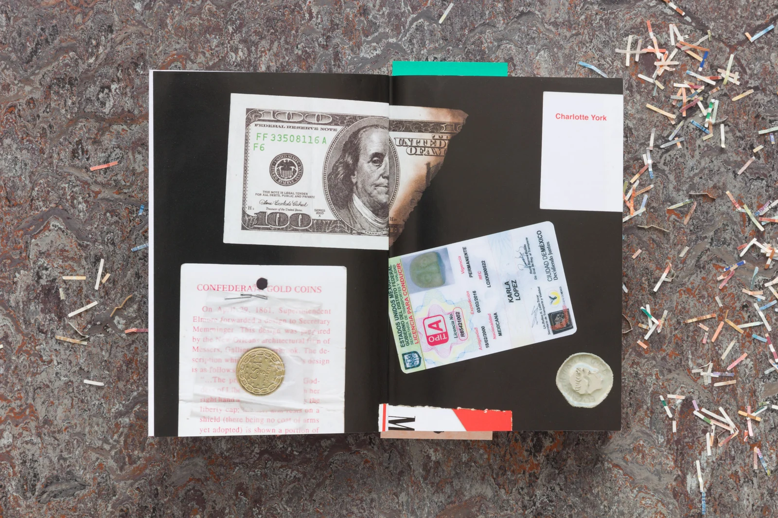 Since 2009, Charlotte York would take her wallet out in a restaurant, a bar, on a picnic blanket or even an art centre to give a guided tour of its content. Perhaps you were there, sober or drunk, and perhaps you interrupted her to show your own wallet. Perhaps your name is Elias and you gave her a coin which you described as the funniest in the world on a beautiful spring evening in Stockholm.