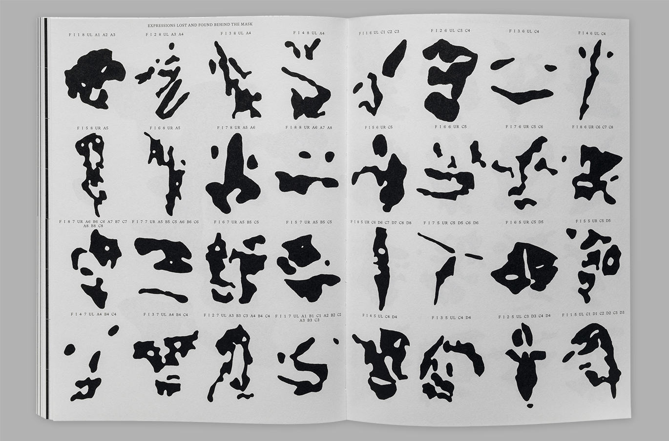 Revealing and concealing, exposing and protecting, associating and disassociating—contrasts and transitions determine the essence of the mask. The interest in ritual masks marks the starting point of this project by Swiss graphic designer Aurelia Peter. At the centre of the visual exploration are three modern masks whose different details are depicted on both sides (outside and inside). The publication illustrates the phenomenon of the mask: making visible and recognizing that the mask can be based on cultural as well as on social norms and values within a social system or under individual circumstances. Immerse yourself in the mask and discover that many different facets may emerge. A wealth of new aspects—a new wealth. In the figurative sense, an individual experience can take place regarding the everyday „masks“ and „disguises“ in the interpersonal realm. (The textile design in the form of a large scarf enables the potential owner to decide for herself/himself which parts of the scarf should be shown on the outside and which should remain hidden: Playing with visual and emotional perception, which at the same time expands our individual diversity and possibilities.)