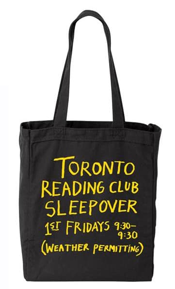 "These functional book bags serve as a continuation of New York based artist, Cary Leibowitz' recent Belt Buckle series, which commemorated fictional gatherings such as Tippy Toe Tuesdays, Alice B Toklas Clam Bake Bake Sale Bake Sale Clam Bake, New England Concrete Poets Picnic, etc." (Nothing Else Press)