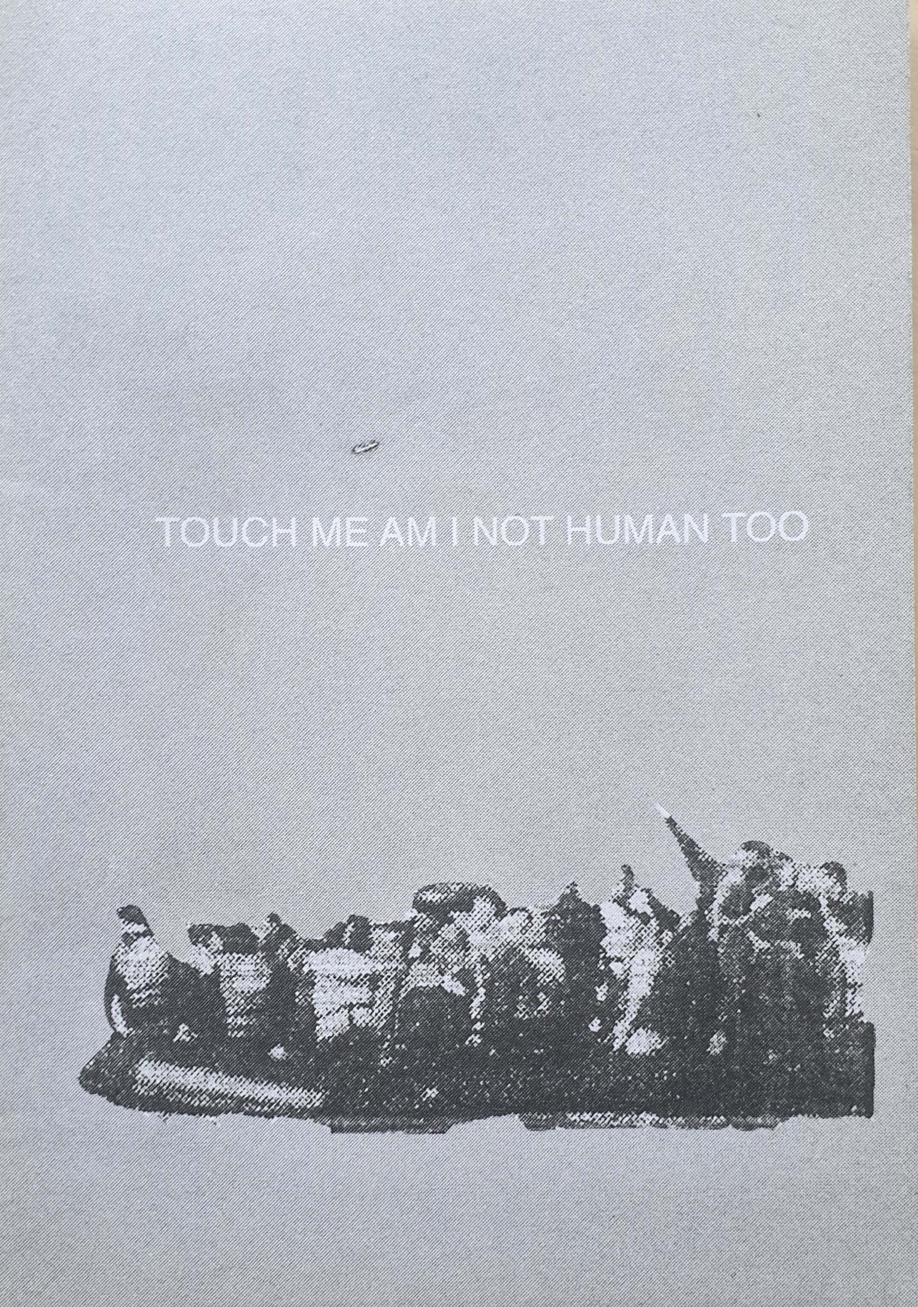 This zine consists entirely of manipulated images and text from the U.K. media. The photographs were taken by Giles Duley as part of his work with the United Nations High Commissioner for Refugees (UNHCR), published in the article 'Cemetary of Souls: The Refugee Crisis on Lesbos' in The Guardian in November 2015. Stationed on the greek island of Lesbos to document the daily arrival of thousands of desperate people from Syria, Afghanistan and beyond. The text is taken from a research essay documentin the language used by five of the UK's most widespread media outlets, detailin the most common words and rhetoric used amongst them. These images and texts were compiled by Melanie Wheeler during a research project as part of the Floating Islands residency 2015 and produced for 'Am I Not Human Too' 2016 to raise money in aid of the UNHCR and other refugee charities.