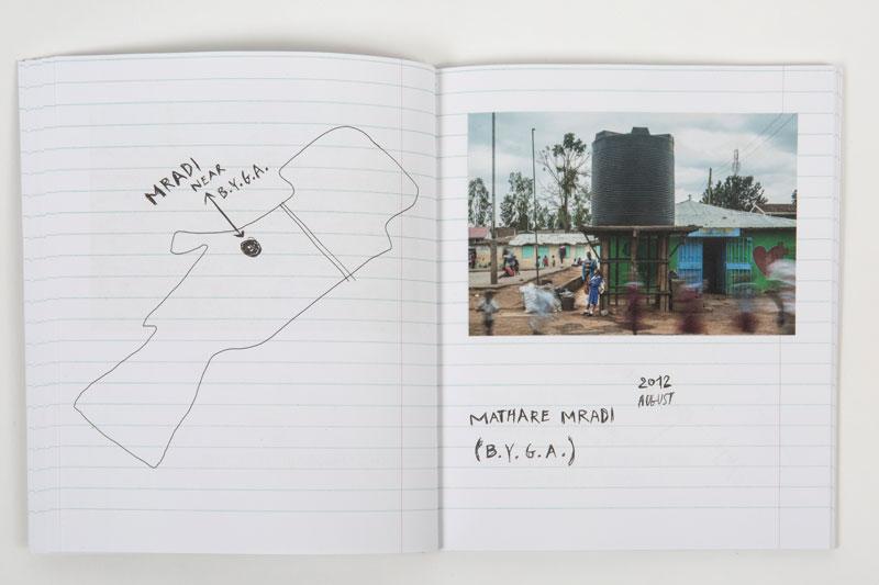 Ho lavorato su elementi che nel caos del paesaggio urbano del ghetto si ripetono come punti fermi di una geografia perennemente in trasformazione e ho creato un catalogo che si concretizza nelle pagine di un quaderno di scuola che ho sempre portato con me».