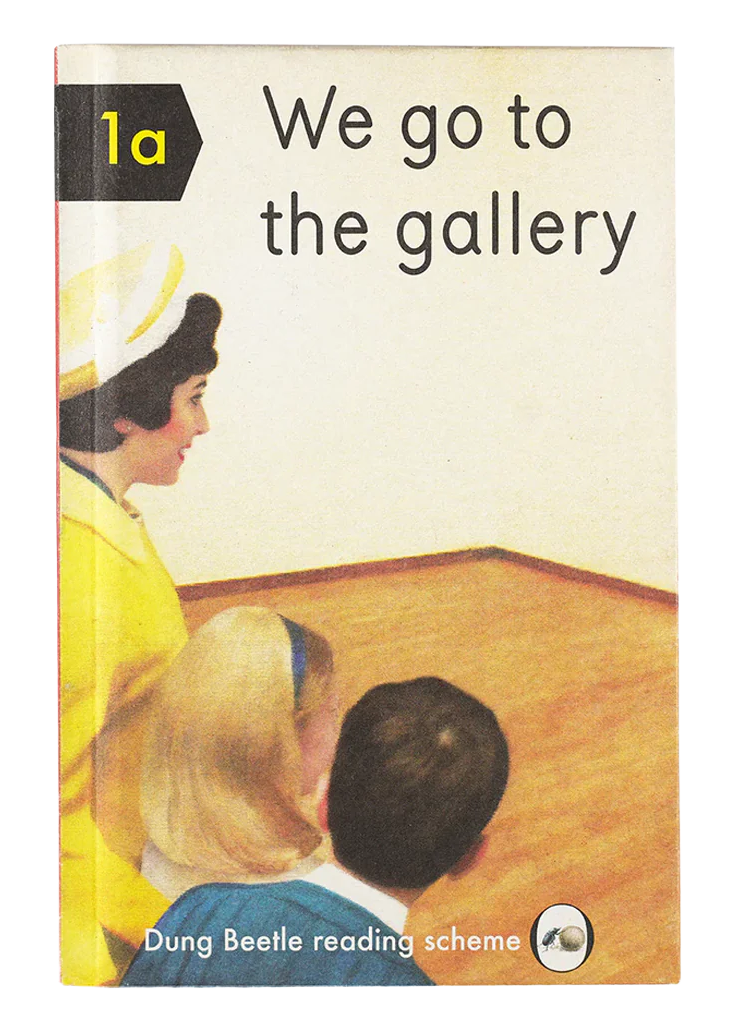 'We Go to the Gallery' is the first and original in a series of Dung Beetle Reading Scheme books designed to make scary subjects approachable for the under 5s. Printed in bold colours and written in a clear and cheerful tone, each book will drag families into the darker recesses of the collective unconscious, for their broader cultural benefit.