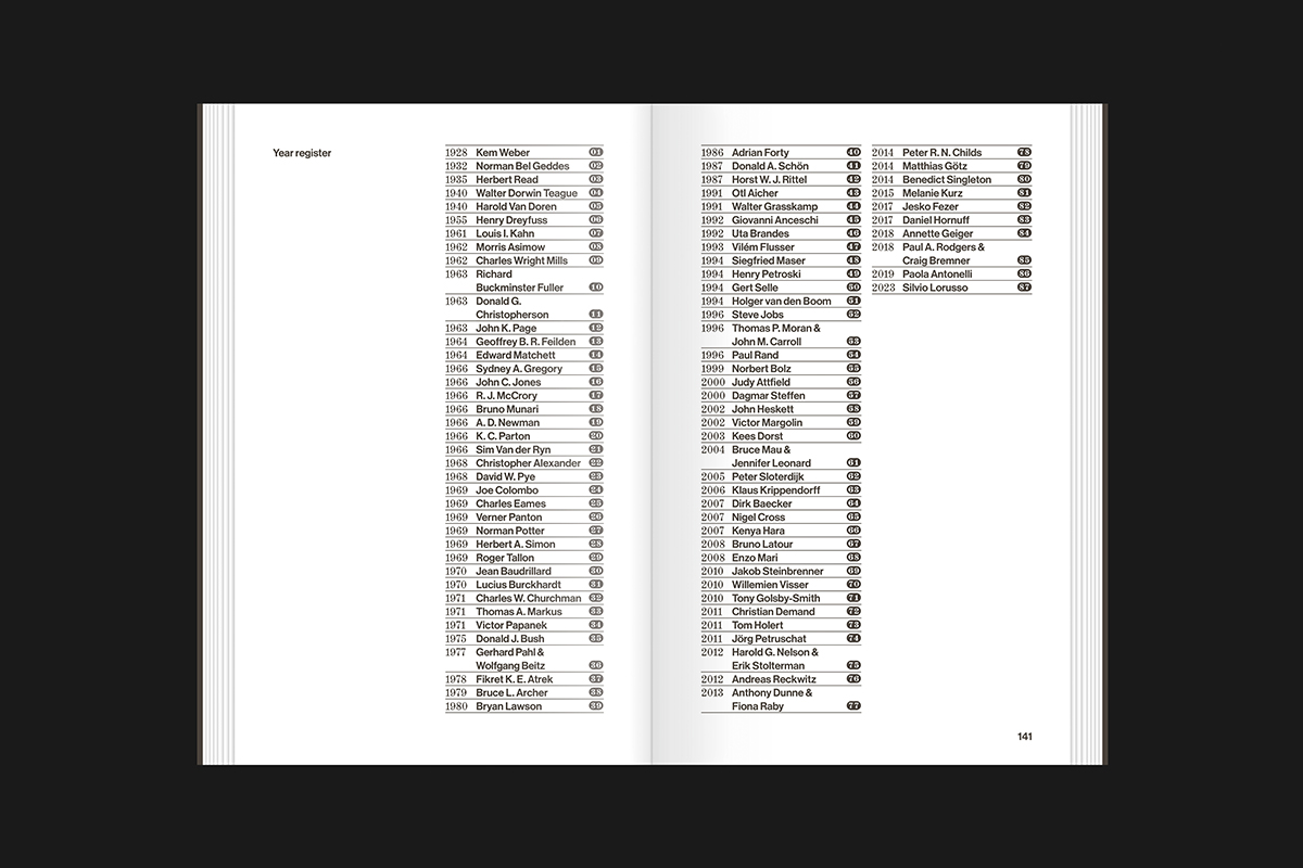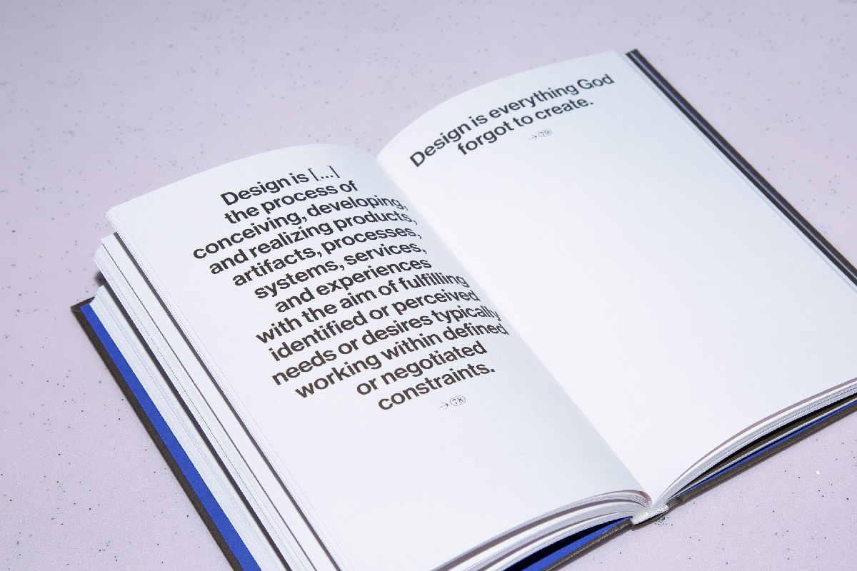 What was design? pits 87 historical one-sentence answers from practitioners, theorists, and philosophers against one another. The result is a web of radical short-form definitions that remain strikingly contradictory in their references. This selection is accompanied by an essay from Florian Walzel, exploring the deeper reasons behind the conceptual ambiguity of design.